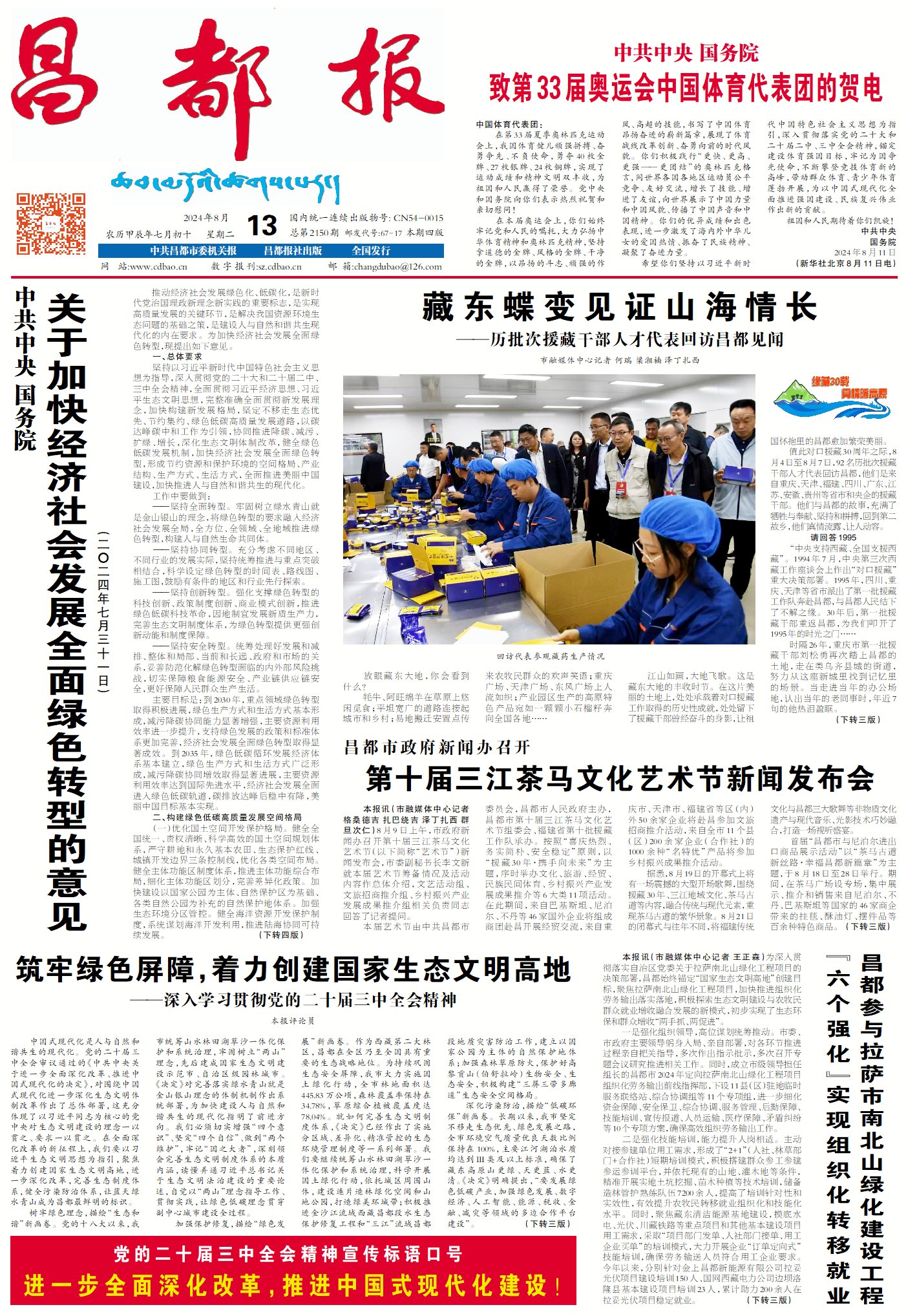 中國式現(xiàn)代化是人與自然和諧共生的現(xiàn)代化。黨的二十屆三中全會審議通過的《中共中央關于進一步全面深化改革、推進中國式現(xiàn)代化的決定》,對圍繞中國式現(xiàn)代化進一步深化生態(tài)文明體制改革作出了總體部署,這充分體現(xiàn)了以習近平同志為核心的黨中央對生態(tài)文明建設的理念一以貫之、要求一以貫之。在全面深化改革的新征程上,我們要以習近平生態(tài)文明思想為指引,聚焦著力創(chuàng)建國家生態(tài)文明高地,進一步深化改革,完善生態(tài)制度體系,健全污染防治體系,讓藍天綠水青山成為昌都最鮮明的標識。